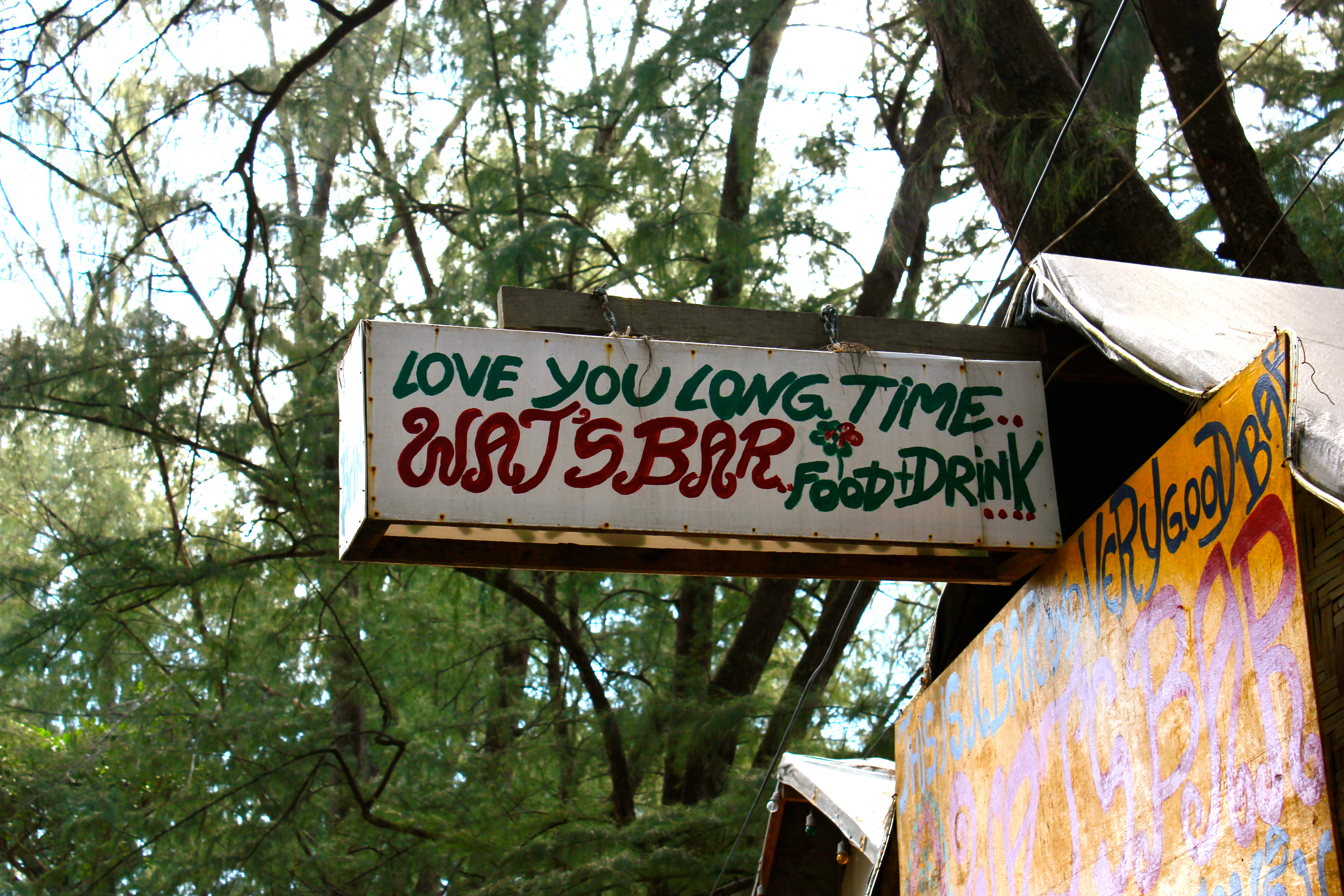 A few minutes later, the van pulls over and it looks like we are in the middle of nowhere. He drops us off and we are on a two lane road lined with tall, beautiful trees. We think we can hear the beach, but we aren’t sure, so we just start walking. We pass a big police station and we see some folks cooking outside. We try to mime that we need to find a place to stay. Thai people are incredible. A very kind man says, “400 baht a night? Bamboo hut on the beach? I’ll take you girls there!” We climb in the back of his pickup truck and he drives us to paradise. After negotiating his price for us, he continued on with the rest of his day, as if nothing out of the ordinary had happened. He had dropped us off at bamboo huts on the beach. Bamboo huts on the beach! I’m fairly certain I could have lived in one for the rest of my life.