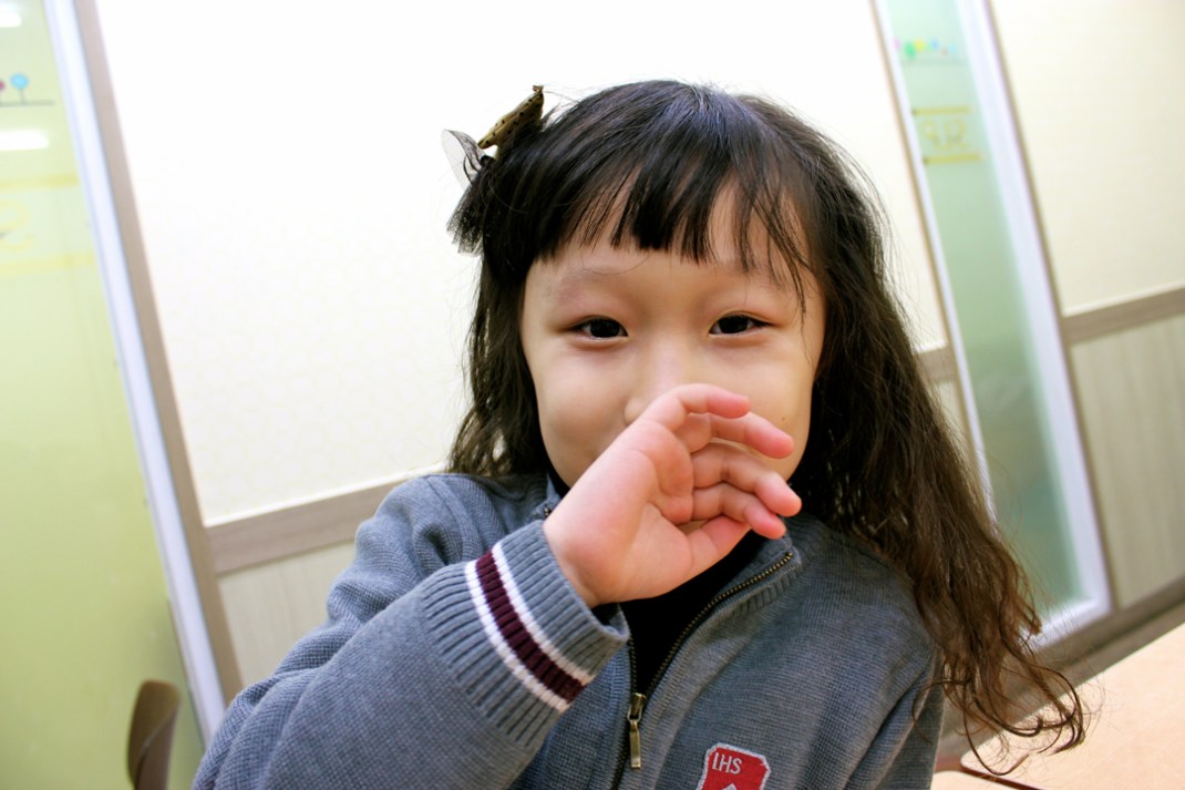 I love this photograph because it so perfectly represents little Korean girls. In Korea, women cover their mouths when they laugh. Both girls and boys get perms on a regular basis, which they call “Permaaaa, permaaaa.” Shiney had just gotten her perma the night before the picture was taken. Pin the permed hair back with big, gaudy, furry bows and you know you’re in Korea.