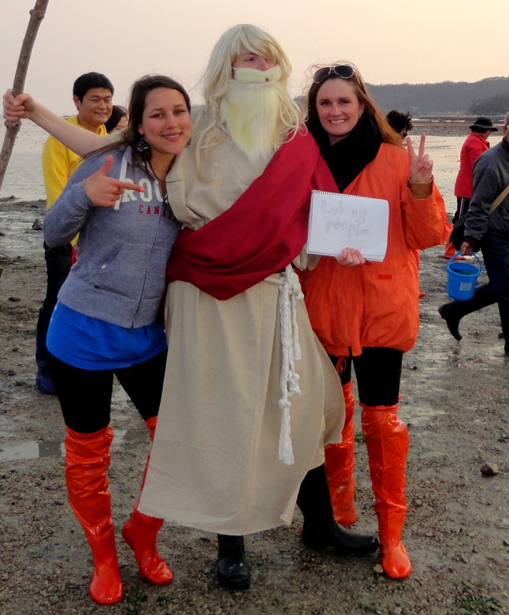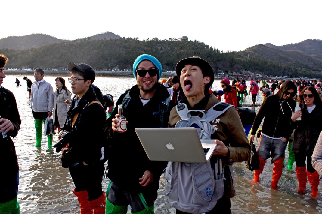 Upon hearing about this event, my mind was blown. What do you mean the sea parts?! It seemed like something out of a greek myth. Thought not necessarily nearly as dramatic as I had imagined, it was an incredibly thing to both see and experience. Before the sea began to part, we strapped on thigh-high rain boots and engaged in the celebratory festival, filled with the consumption of many bottles of makgeolli, jubilant Koreans singing and dancing and, of course, a smattering of seaweed and soju.