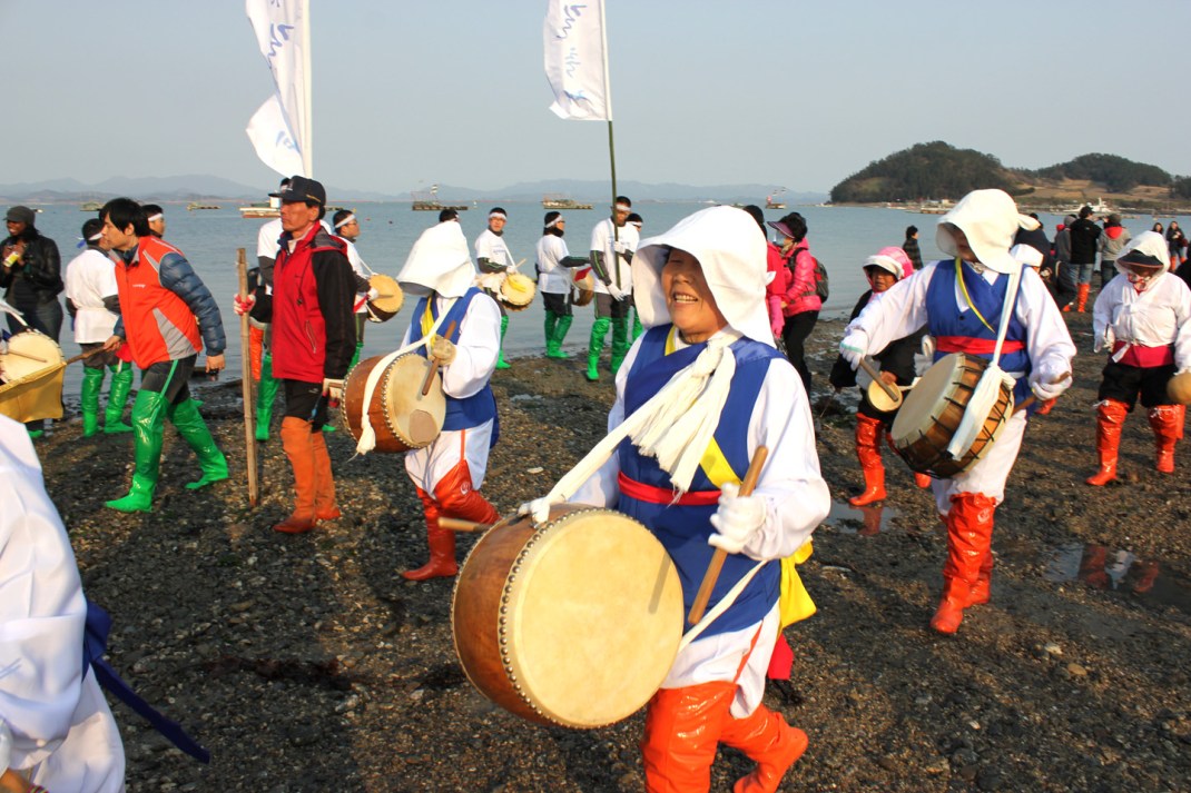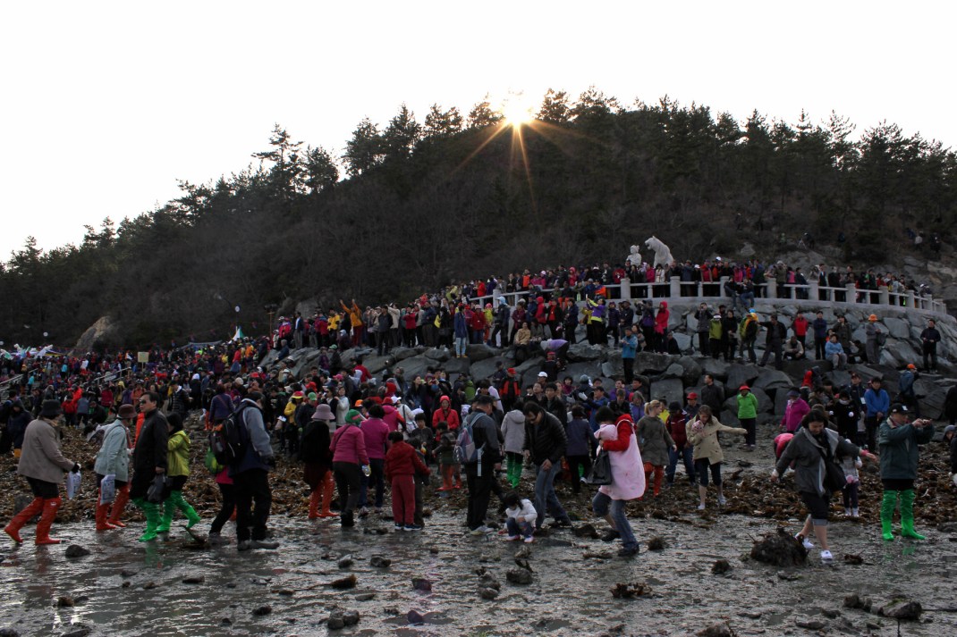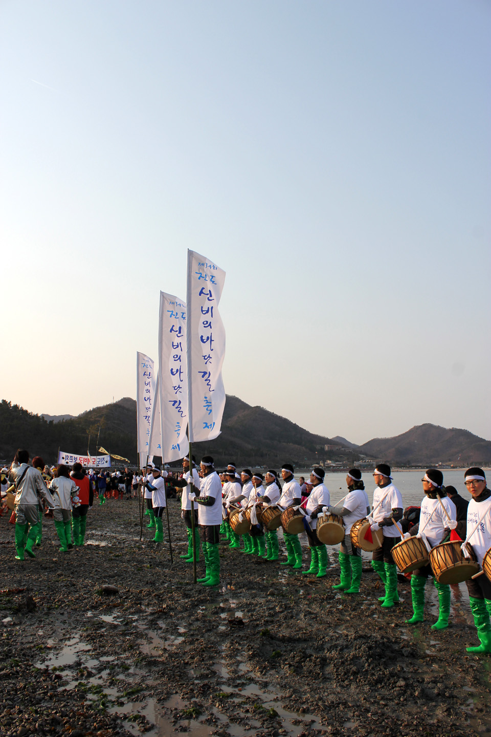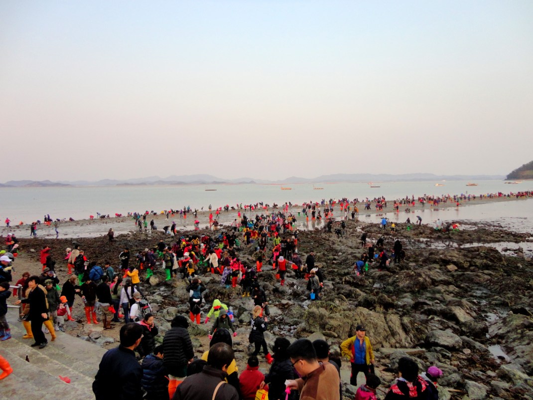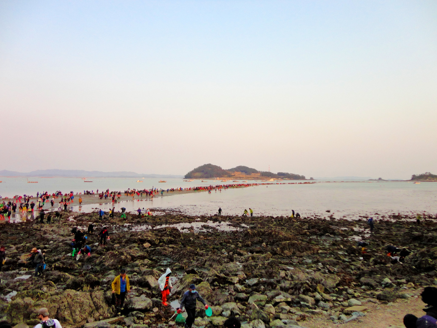 On April 7th, myself and several teachers from my school headed southeast to the island of Jindo in Jeollanam-do Province. Once a year, due to extreme differences in high and low tides, the sea miraculously parts for a brief period of time. During this time, you can walk along a 2.8 kilometer path to a neighboring island. Like everything in Korea, this event is celebrated with a weekend-long Sea Parting Festival.