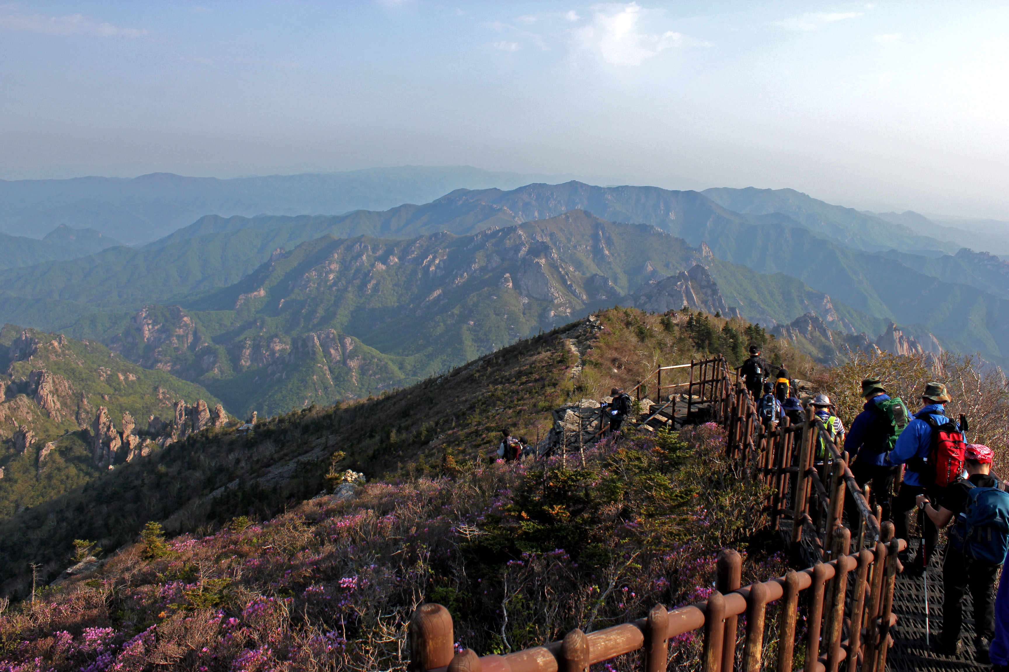 Dinosaur Ridge is in Inner Seorak, so it is difficult to see it from a distance. The best vantage point, in my opinion, if from Huingak Shelter, which can be reached in about 2.5 hours from the entrance of the park. From Daechong-bong, the true peak of Seoraksan, you also have a decent view of Dinosaur Ridge, although you are still pretty far away. Have a fantastic time… good luck!
