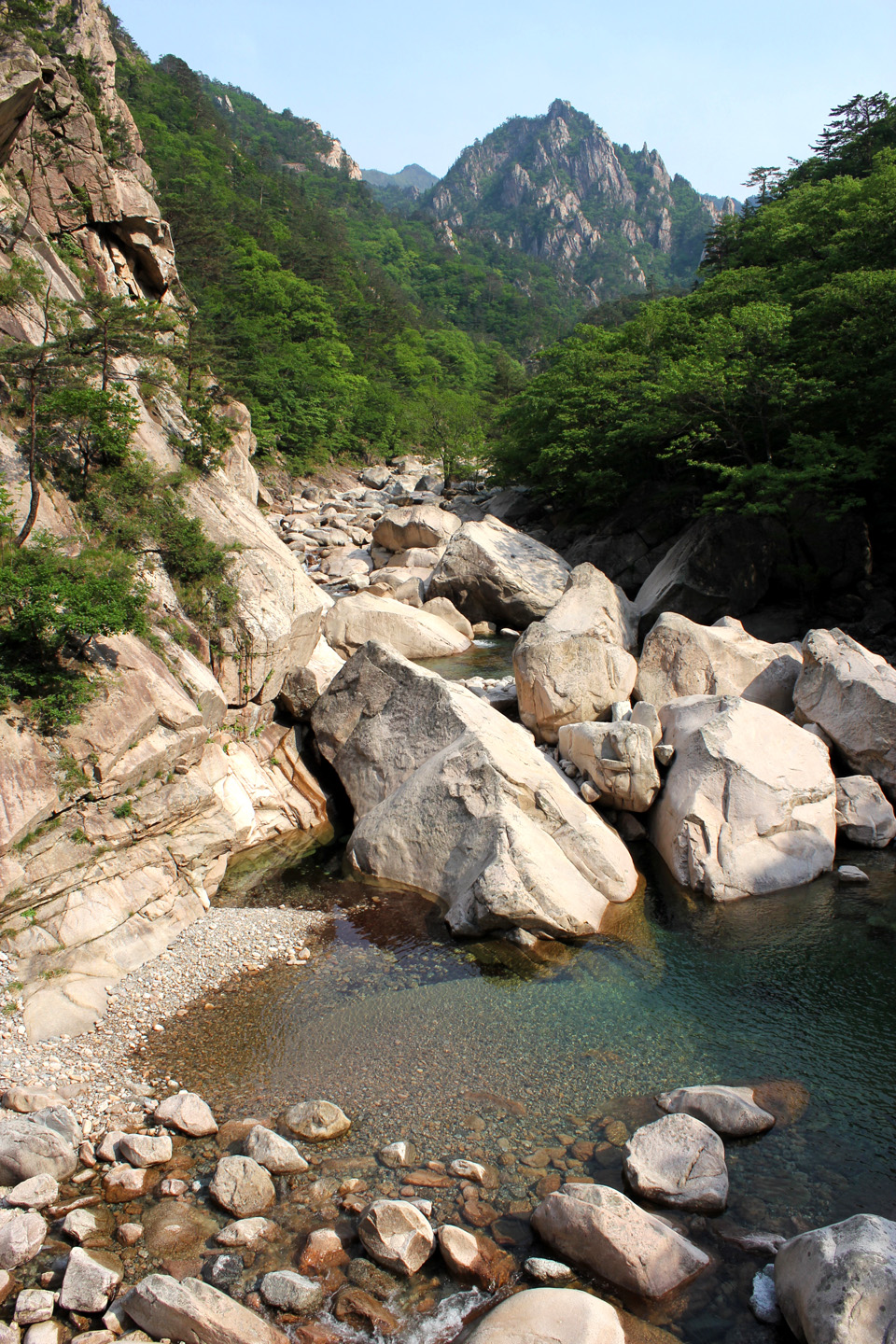 Seoraksan is hands-down, in my opinion, the most beautiful, amazing place in Korea. You may recall I ventured to this mountain in the fall. However, it was frigid, rainy and I was highly unprepared. This weekend was a different story – not a cloud in the sky, fantastic company and a well-abled body.