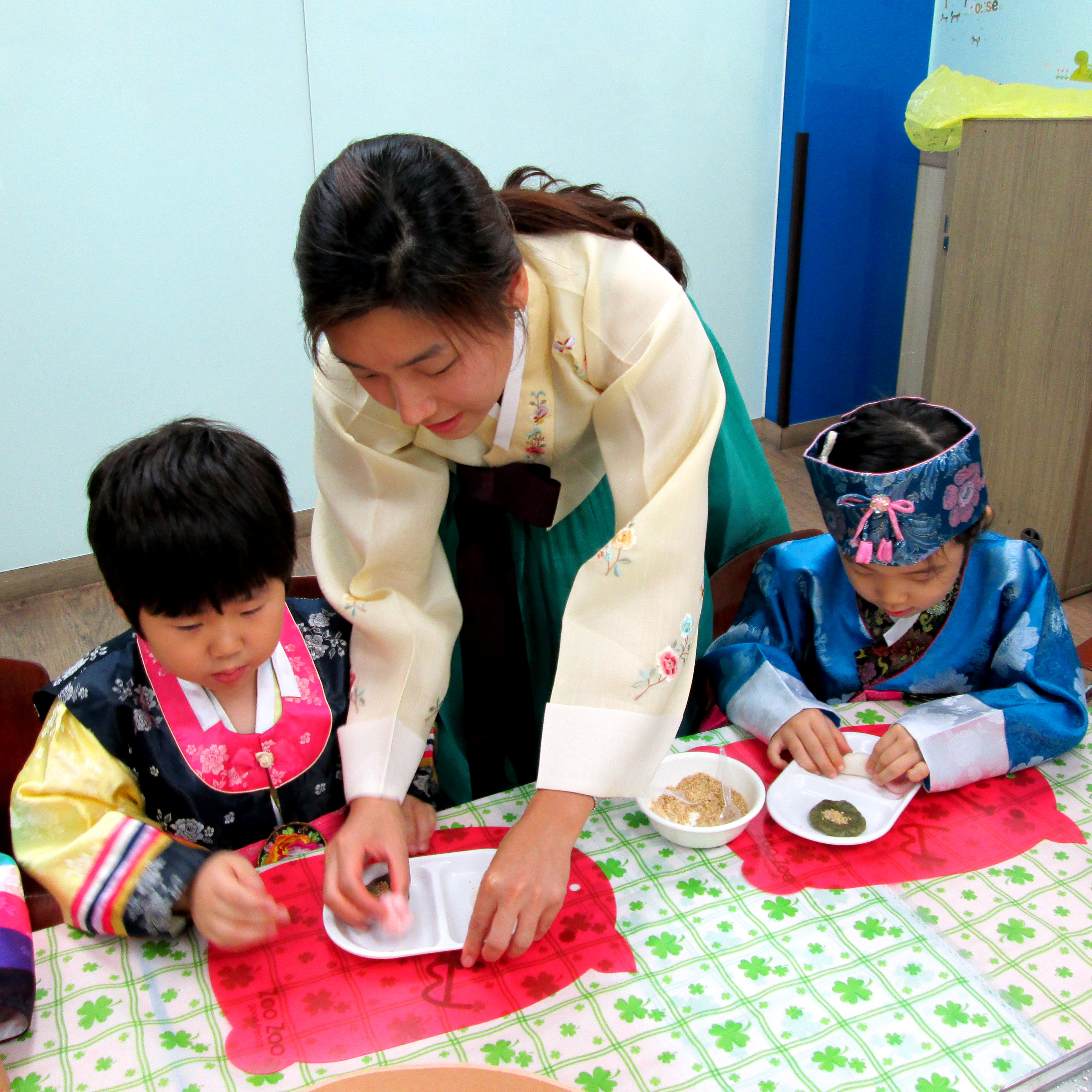 Chuseok is a Korean holiday that celebrates the largest harvest of the year, similar to American Thanksgiving. For preschool, we dressed up in Hanbok, traditional Korean clothes, made songpyeon and played Yute, a traditional Korean game. The babes looked so adorable in their hanbok, don’t you think?