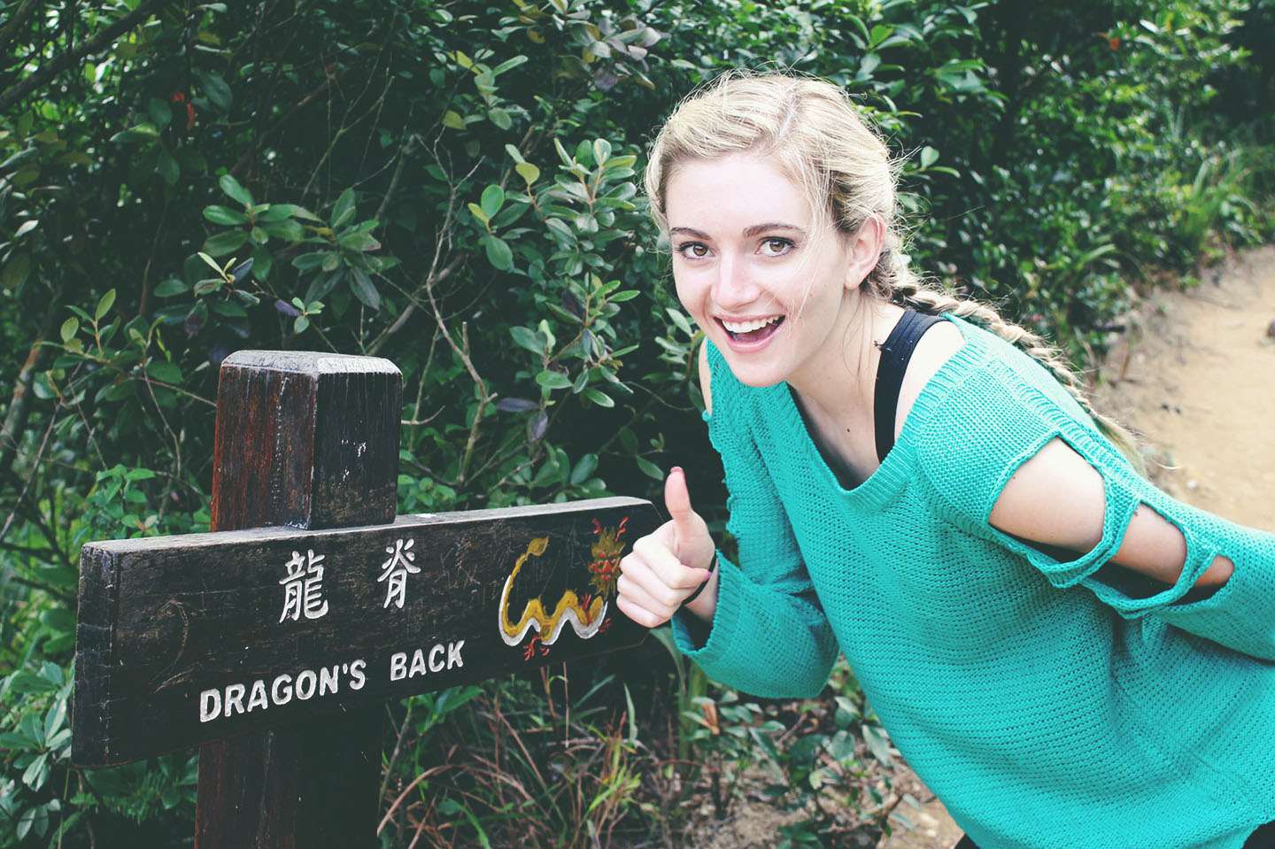Time Magazine listed the Dragon’s Back as the best urban hike in the world. How could a hike ever live up to that kind of over-the-top expectation? Dragon’s Back is truly a phenomenal way to experience the legendary beauty of the islands of Hong Kong, but it’s not exactly the hike Magalie and I were expecting. Now, if you’re thinking you’re going to stop reading here because you’re not interested in “the outdoors” or hiking: don’t! To call Dragon’s Back a hike is an over-exaggeration. Dragon’s Back is a total cakewalk. Seriously! This walk would be comfortable for a toddler, your great grandma and everyone in between. The iconic photos you see when you do a google image search are a mere 20-minute walk from the bus stop. Twenty minutes! Twenty minutes and you can be atop The Dragon’s Back, overlooking a multidue of islands floating in the South China Sea.