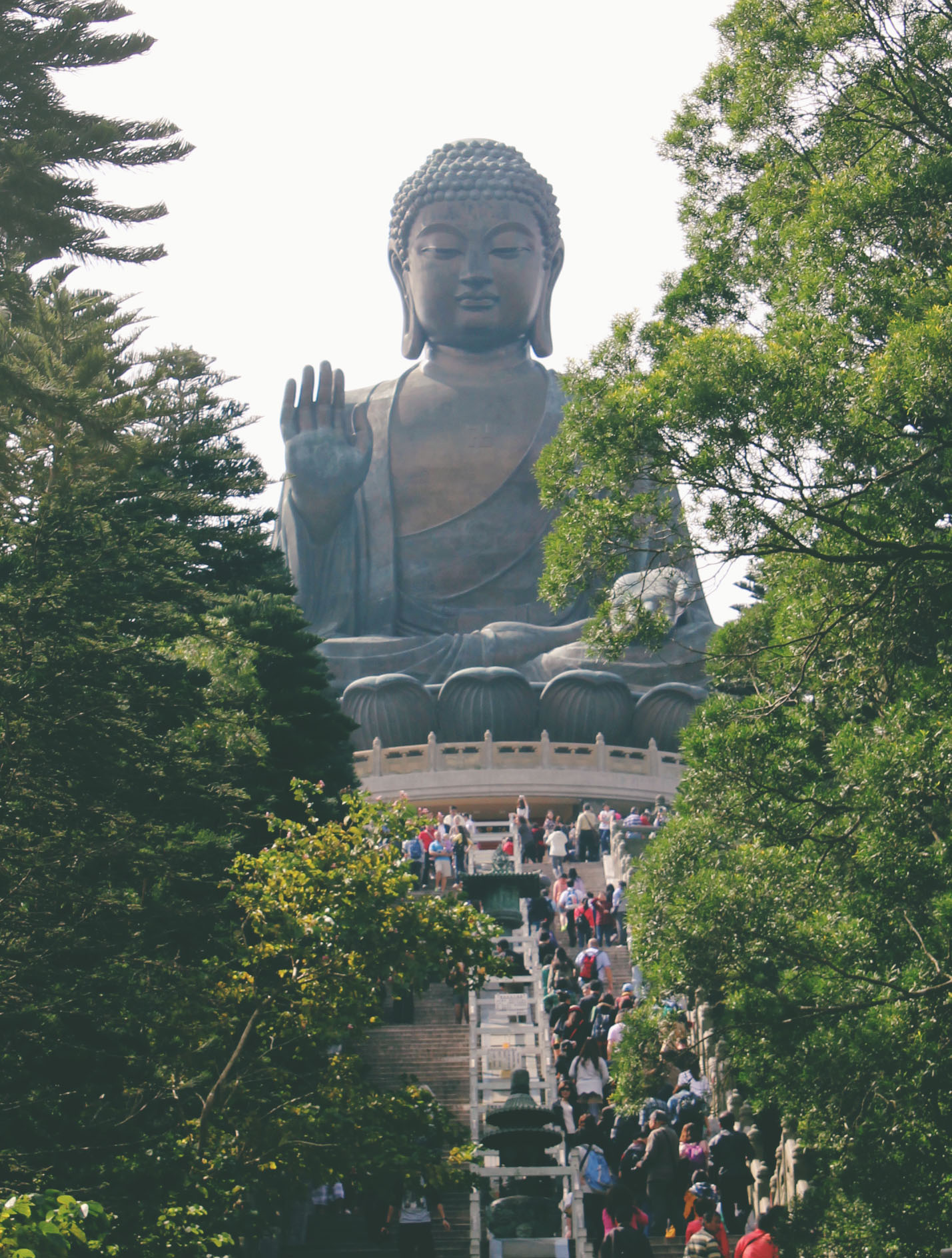Having successfully avoided the tourist hubs on our first day in Hong Kong, it was a bit shocking to arrive at the mother of all tourist destinations: The Tian Tan Big Buddha.
