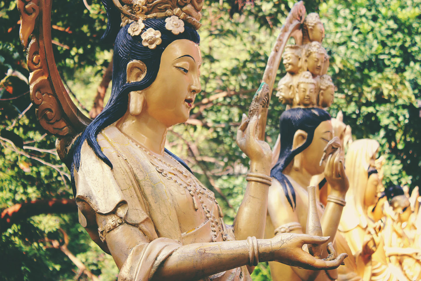 We followed the path up to the heart of the temple. Huge statues, shrines, women buddhas, baby buddhas: all kinds of buddhas and even a few monkeys! Additionally, the view from the top was beautiful, overlooking the surrounding city and mountains. Words can’t do this one justice. Check it!
