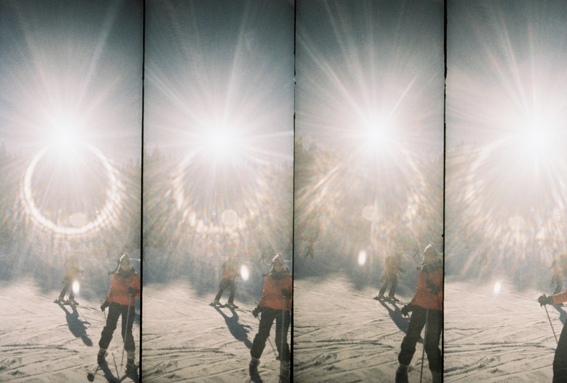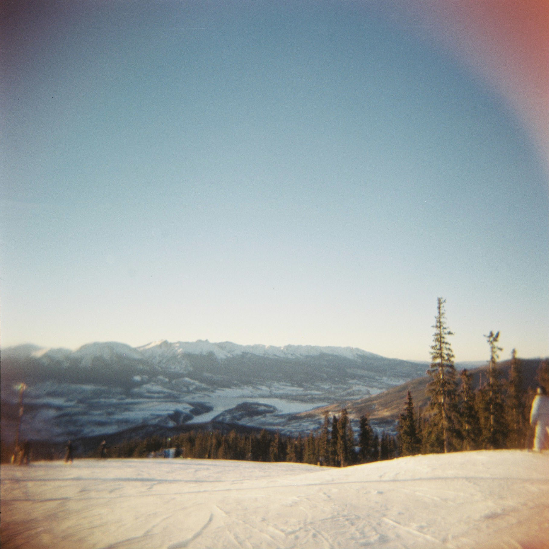 I can only imagine how I must have appeared to the casual passerby: my bright orange Holga busting out of my left pants pocket, my Lomography Supersampler crammed into the right and my DSLR hanging around my neck. More than once, I took a nose-dive into the snow and sent my toy cameras spilling out onto the slopes. Three cameras on your person, no backpack, while you’re skiing? Not the most intelligent move, I’ll admit.