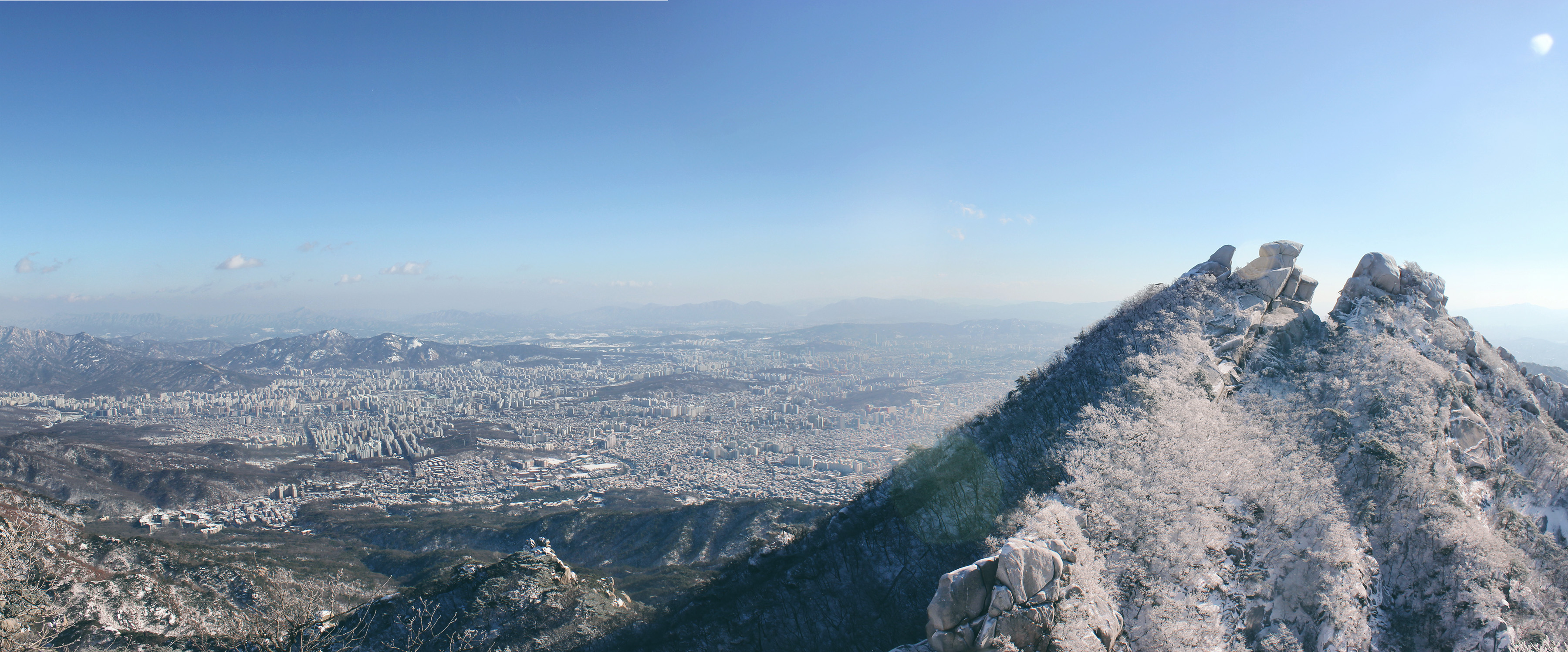 To follow my route, get off at Suyu Station and take any bus headed for Doseonsa temple (there are many, many). When you get off the bus, you will see a North Face Store. At this intersection and head up the street. You will see Baegundae and Insubong in all of their magnificence directly in front of you. This street dead ends at the trailhead after winding uphill for about 2km. From the trailhead, it’s a direct route up to Baegundae, expect it to take about an hour and a half at a moderate pace. The last .3km of the hike are the only challenging bits and require some monkeying up the rock faces. If you have a fear of heights, this part of the hike might be the most challenging. I would recommend a pair of crampons for a winter hike, just to be safe.